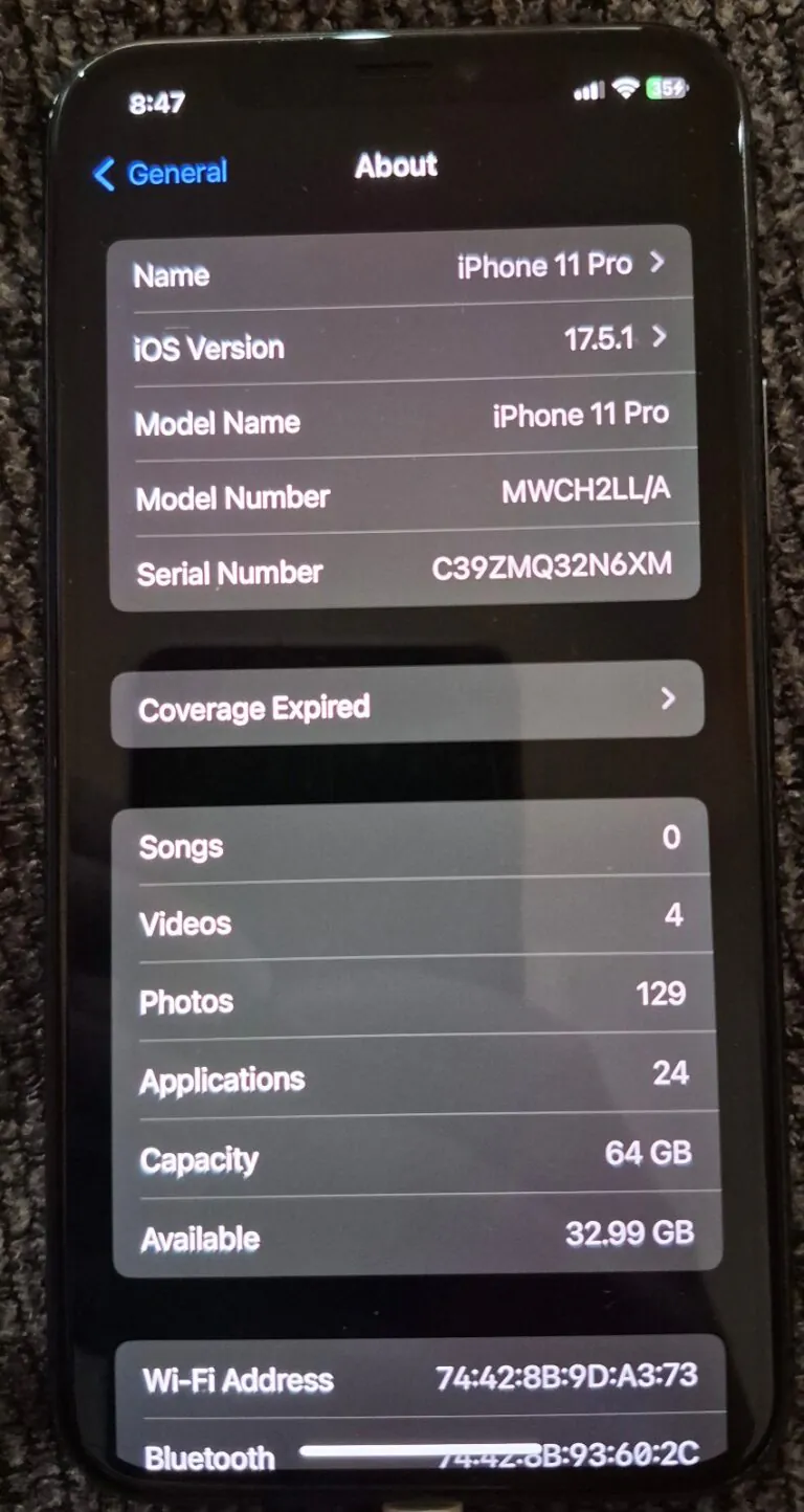 Apple iPhone 11 Pro A2160 64GB Space Gray Unlocked – Okay Condition