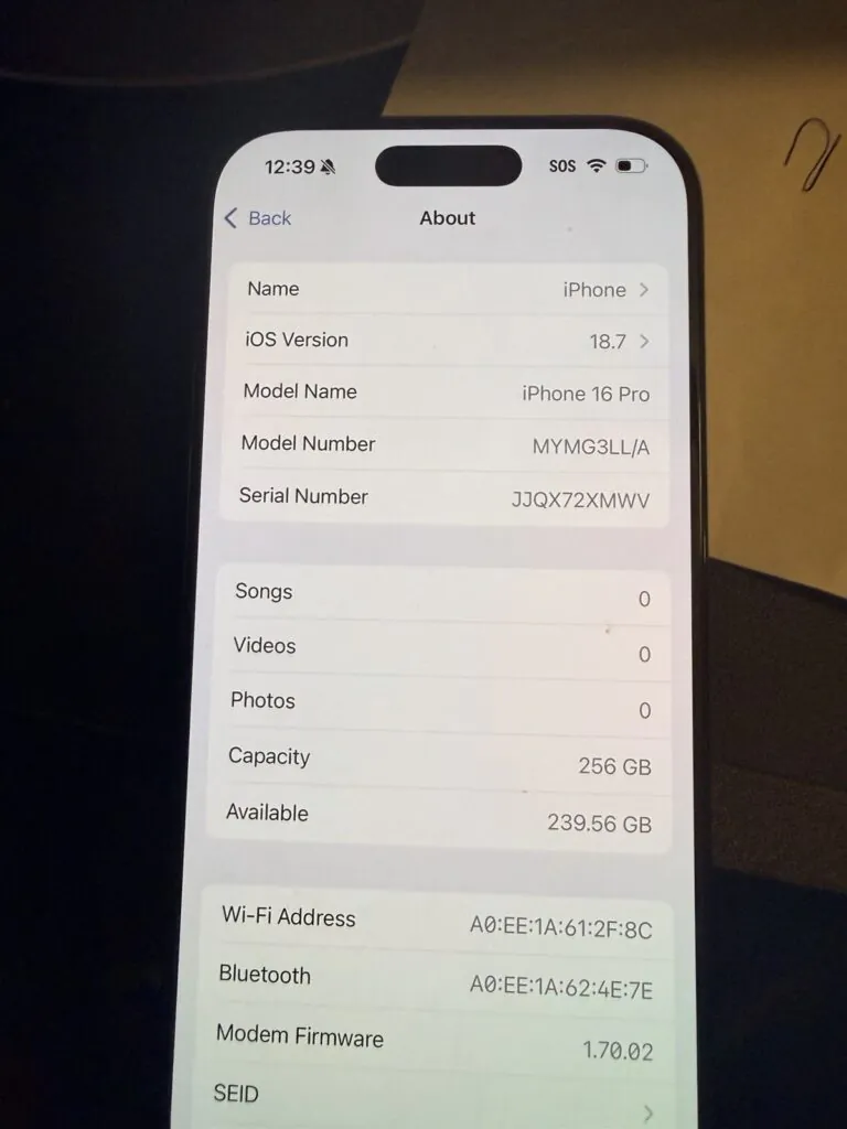 Apple iPhone 16 Pro A3083, 256GB, Black Titanium, AT&T
